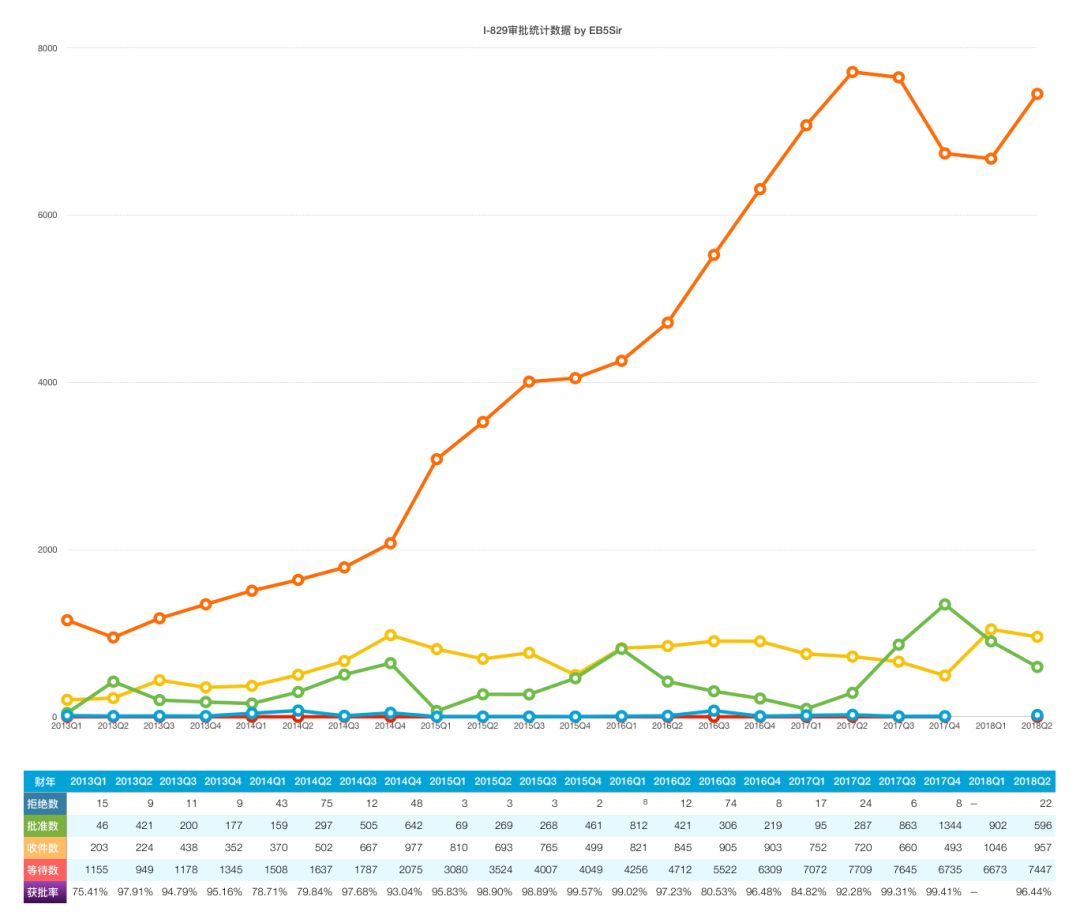 最新消息, 局公布了2018财年第二季度(2018年1月1日至3月31日)的EB-5案件递件和审批数据。