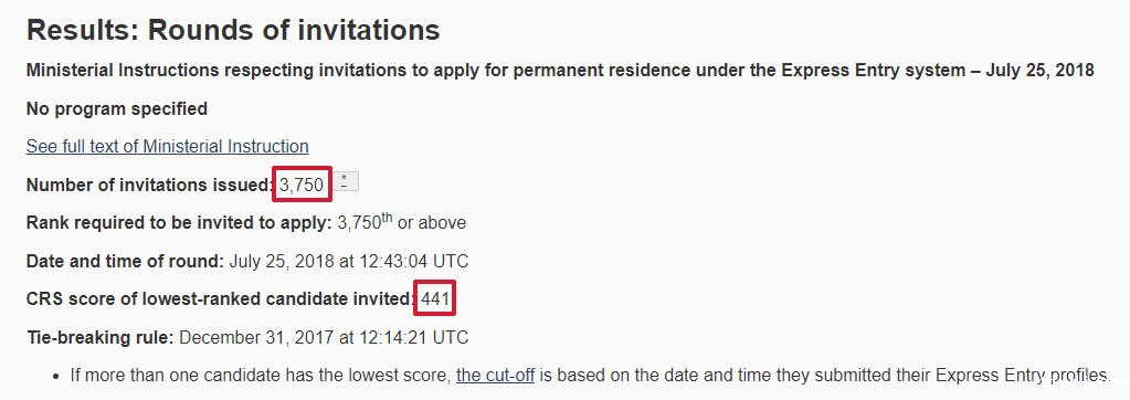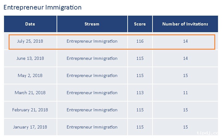 当地时间7月25日,Express Entry进行了第94轮邀请,不分职业,不分类别,本轮最低邀请分数441分,邀请人数3750人。相较上一轮邀请,获邀分数下降1分,获邀人数则持平。在目前的EE选池中,431-440的区间里有多达近8379人,441-450的区间里还有822人。2018年EE计划邀请数量为74900人,目前总共邀请了46500人。而在2017年,EE目标邀请数为71700个申请,而实际总共发放了86023个申请。