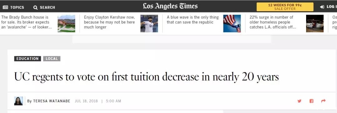 当地时间7月18日,美国加州大学校董会在旧金山召开了为期两天的会议。他们计划为2018至2019年度的87亿美元支出计划投票,该计划包括近20年来的首次调降学费措施。拟议的60美元降幅实现后,基本学杂费将变为每年1.257万美元,其中减去了2007年用来支付法律费用的附加费。政府议员批准向加州大学增加拨款,比州长Jerry Brown计划的多1.175亿美元,足以抵消计划的上涨学费。最终,州长和议会同意将加州大学的拨款资金增加到3.47亿美元。这笔资金中的三分之二是临时且一次性提供的,而不是永久性资金。