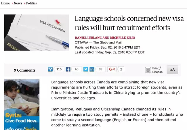 移民部称,在7月13日前抵达加拿大的留学生都不受新政策影响,只需一个学生许即可。这一新政策的事实引发了诸多语言学校的不满,每年来加进修英语和法语的学生约有三成会升读大专院校,突然而来的改变,可能对很多学生造成影响。移民部长麦家廉表示已收到众多语言学校的意见,但并不会重新评估新规则。因此,持“双证”上学势在必行。