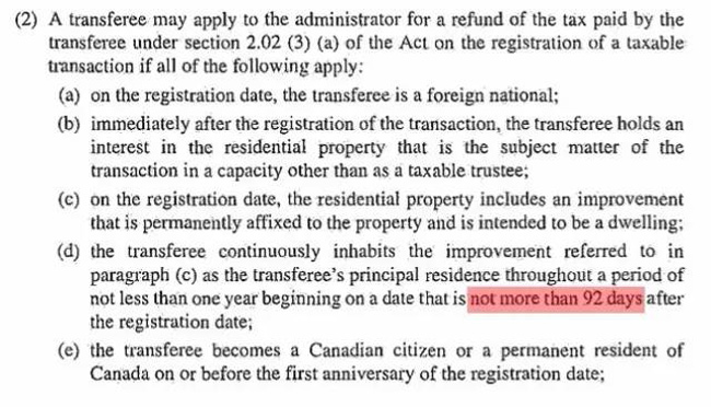 2.购自住房之后一年内成为加拿大永久居民或加拿大公民者可申请15%外国买家税退款。