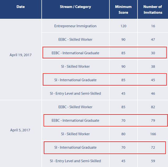温哥华分公司收到最新消息,当地时间4月19日,BCPNP和EE系统分别进行了新一轮的筛选,获邀分数有升有降。但相同的是,加拿大移民局越来越向语言能力、工作能力、学习能力俱佳的小伙伴们倾斜!
