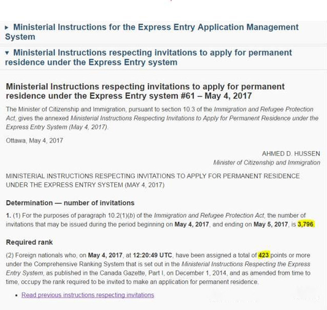 温哥华分公司收到消息,当地时间5月4日,加拿大联邦移民部公布了第61轮Express Entry的筛选结果。时隔两周再次邀请,分数小幅上涨,人数却有所增长!