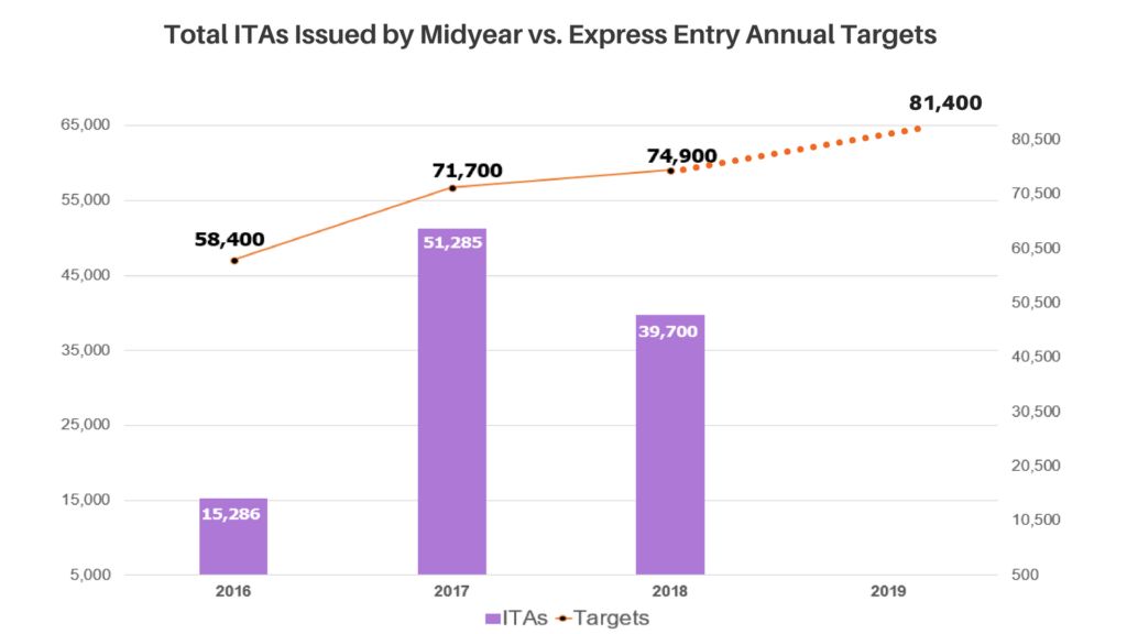 在刚刚过去的6月份,抽签数量增加了36%,移民部所发出的ITA邀请数量突破历史记录,几乎是2017年的2倍之多。也多亏了6月份的惊人业绩,使得2018年目前13次抽签中,ITA总数量达到39,700,接近2018年总移民目标的一半。