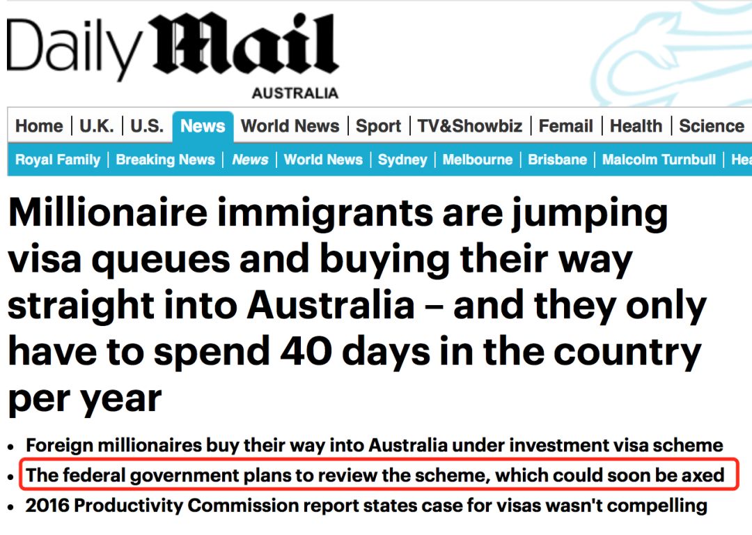 据悉,澳大利亚近日拟取消投资移民,包括重大投资500万澳币以及150万澳币。