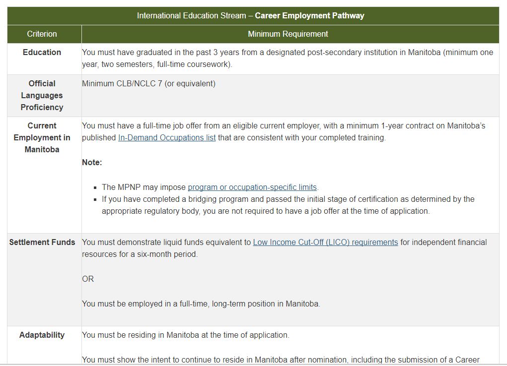 曼尼托巴省为吸引国际留学专才,新开设国际留学生移民项目,在曼省专上学院读书一年,毕业后找到曼省工作,即有机会成功移民。曼省省提名移民项目(MPNP)从今年11月30日起,开设一个专门引进国际留学生的移民项目“职业雇用通道”,对申请人的要求如下: