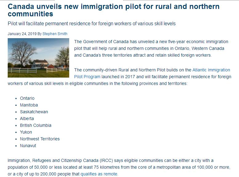 在目前现有的联邦经济移民计划中,大多数新移民都定居在多伦多、温哥华和蒙特利尔等大城市。新移民试点项目无疑效仿了加拿大大西洋地区于2017年启动的一个类似项目,据说该项目在帮助填补本地区的劳动力缺口方面取得了成功。