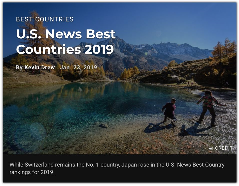 根据《美国新闻与世界报道》US News & World Report公布的最新报告,加拿大被评为综合排名第三的最佳国度,同时还获得2019年全世界国家生活质量榜单之首!(注:该排行榜是基于BAV Group和宾夕法尼亚大学沃顿商学院的调查,来自36个国家的20,300名参与者,根据65项不同指标给80个国家投票。)