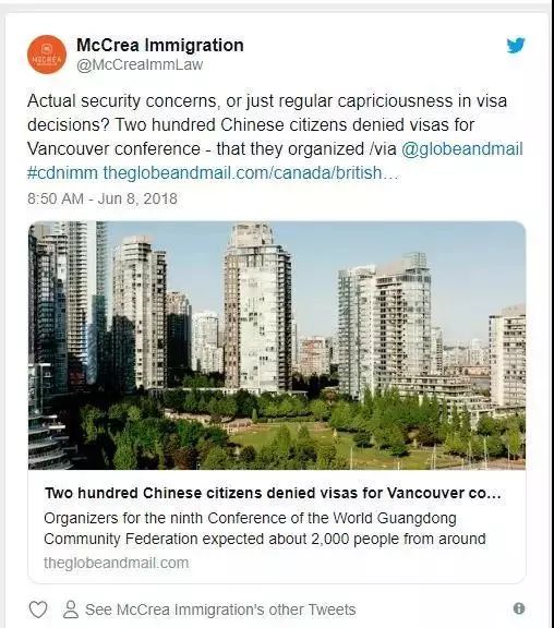 另外,网上也广为流传着“中国国内拒签地图”的说法。加拿大移民律师曾在推特上公开过一份所谓的“秘密文件”,该文件显示,中国国内的辽宁、广东、河北、河南、福建,湖南和天津市地区被加拿大移民部认定为“高危地区”,他们对待这些地方的签证申请会从严审核。