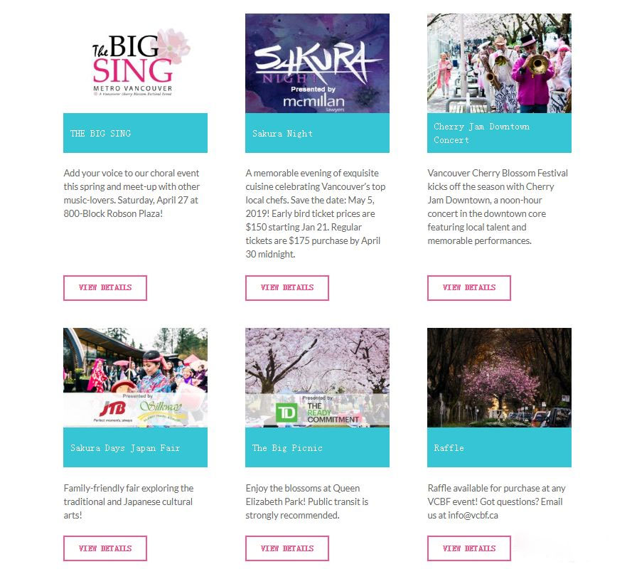 而根据温哥华樱花节官网显示,一年一度的温哥华樱花节即将于今年4月4日至28日期间进行。今年除了常规的赏樱活动之外,主要活动还包括樱花盛典伞之舞、樱花摄影展、樱花丛中瑜伽、绘画、园艺论坛、音乐会 大型歌会活动,樱花之夜美食活动...光是想一想就不由得陶醉其中~