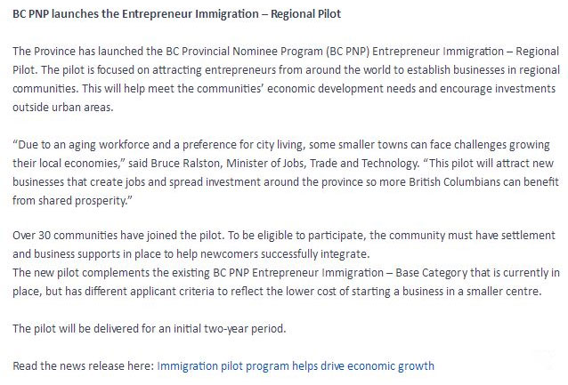 去年11月底,加拿大BC省移民局公布了即将推出BC企业家移民-区域试点项目的消息,而就在3月15日,BC移民局更新了该项目的申请细节,包括申请指引、社区名单及EIR打分细节等。