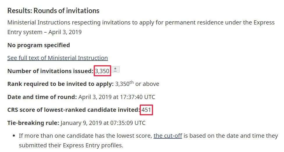 当地时间4月3日,Express Entry进行了新一轮的邀请,不分职业,不分类别,本轮最低邀请分数451分,邀请人数3350人。相较上一轮邀请,获邀分数下降1分,获邀人数则持平。在目前的EE选池中,451-600的区间里还有1961人,441-450的区间里增至3646人,431-440的区间里还有9408人。不难看出,高分的人数有上涨的趋势,技术移民的竞争日趋激烈。对于留学生来说,仍然是要拉开自己的语言优势,如果语言能考到理想的分数,达到高分仍然是可能的。