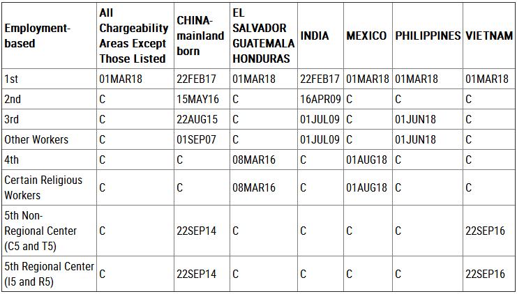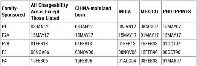 美国国务院签证办公室发布了5月的签证排期公告,EB-5签证排期截止日前进一周至2014年9月22日,表B也前进一周至2014年10月15日。亲属移民“绿卡批准排期”,中国申请人的情况为——F-1类:由2011年12月1日前进至2012年1月8日;F-2A类:由2017年3月1日前进至2017年5月15日;F-2B类:由2012年10月22日前进至2013年2月1日;F-3类:由2006年9月22日前进至2006年11月8日;F-4类:由2006年1月1日前进到2006年2月15日。职业移民“绿卡批准排期”,中国申请人的情况为——中国大陆出生申请人,EB-1保持在2017年2月22日;EB-2由2016年4月1日前进至2016年5月15日;EB-3由2015年8月1日前进至2015年8月22日;EB-4有名额;EB-5由2014年9月15日前进至2014年9月22日。