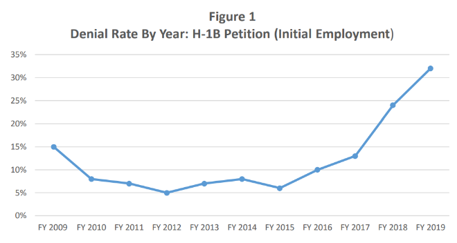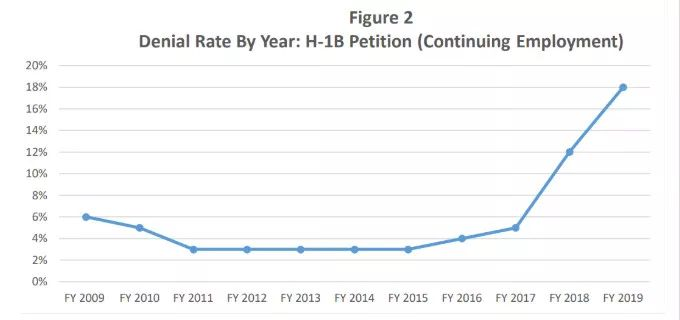 当地时间4月11日,据《华尔街日报》报道,美国国家政策基金会日前发布的一份报告显示,美国政府在2019第一财季发放给外国籍专业技能人才的H-1B工作签证持续收紧。其中,有近1/3的H-1B新申请被拒签,而有18%的H-1B续签申请也被拒绝,这两个比例均创下10年来新高。据了解,今年的美国H-1B签证申请5天内就收件爆满,而比这更残酷的是,它的拒签率还在持续走高。