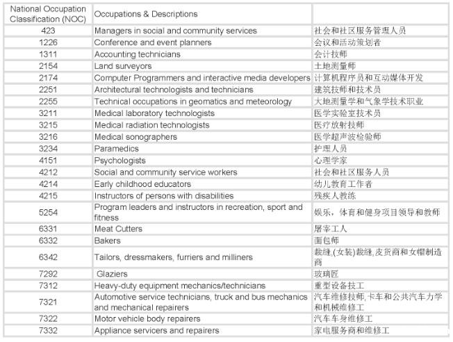 2019年4月4日,加拿大萨省针对该省紧缺职业,再次作出调整,新增了13项新职业,特别是NOC 2174 程序员、NOC1311 会计技师、NOC2251 建筑技师等预计备受欢迎的职业重回列表。