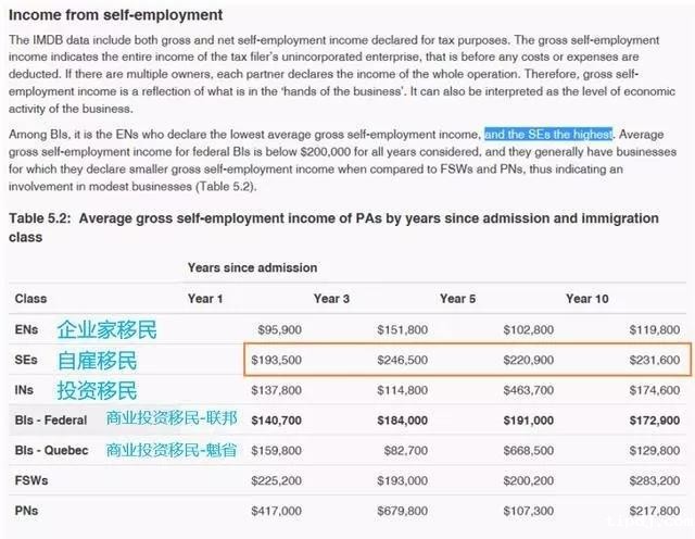 在加拿大移民法案中,联邦自雇项目与企业家移民和投资移民共同存在,但在2012年,加拿大政府对于移民项目进行分析发现,联邦自雇移民项目的移民者在成为永久居民之后的逐年平均毛收入递增明显。