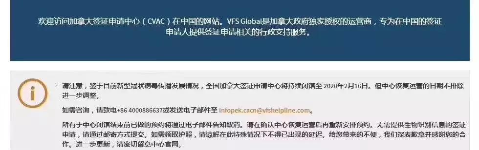 加拿大签证中心通知