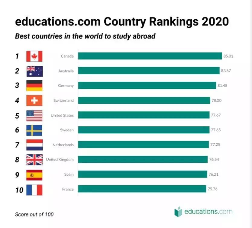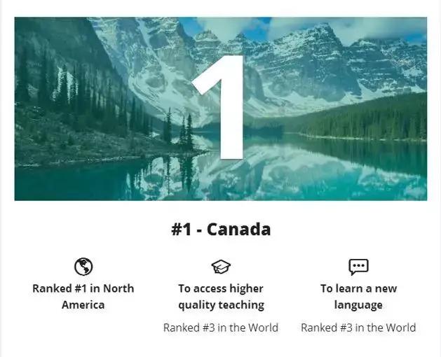 全球教育网近日发布了一组官方数据,通过多方面调查得出了10个最适合留学的十个国家。加拿大在此项排名中,高居第一位!