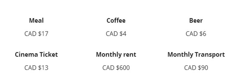 来看一组来自全球教育网调研的在加拿大生活费用的数据: