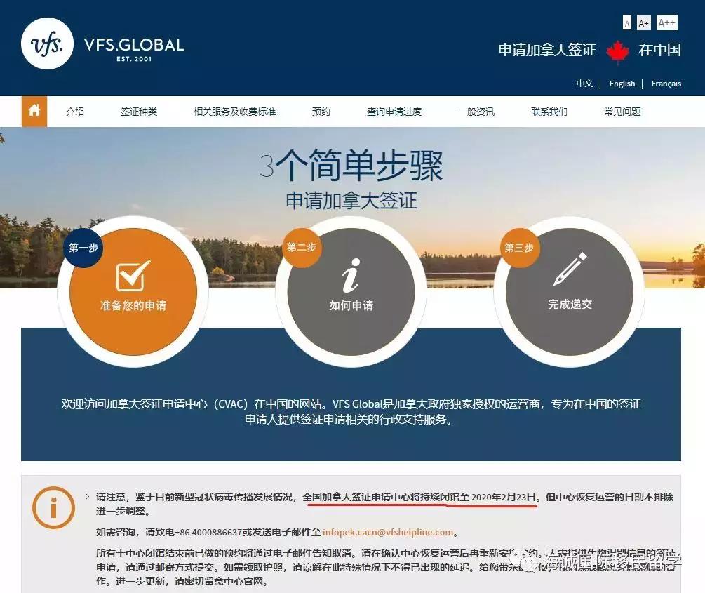 鉴于目前新型冠状病毒传播发展情况,中国所有加拿大签证申请中心将持续闭馆。最新通知显示, 加拿大签证中心闭馆再度延长一个星期, 至2020年2月23日,并且恢复运营的日期不排除进一步调整。