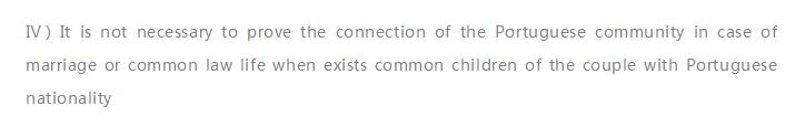 4.当拥有葡萄牙国籍合法结婚或事实婚姻的父母拥有共同子女时,无需提供参与葡萄牙社区联系的证明。