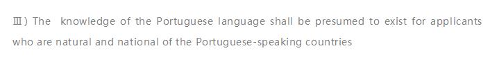 3.对于葡萄牙语国家公民的申请人,应推定其具备葡萄牙语的认知能力。