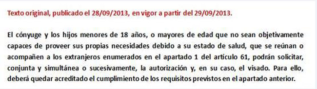主申请人的配偶及未满18周岁子女,满18周岁但是由于健康原因不能自理的子女,满足第61条第1款的,需要提供足以证明上述条件的材料,并跟随投资者一起申请西班牙签证及居住许可。