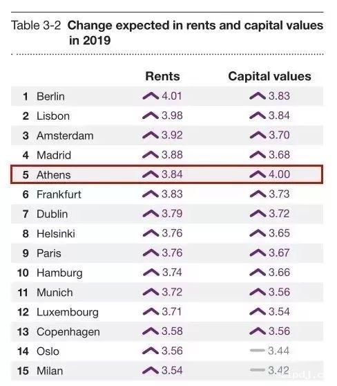 单从租金和房价来看,雅典的投资价值排名也由2018年的第19名上升至第5名,说明了房地产行业专业人士对雅典的房地产未来整体投资行情的认可。