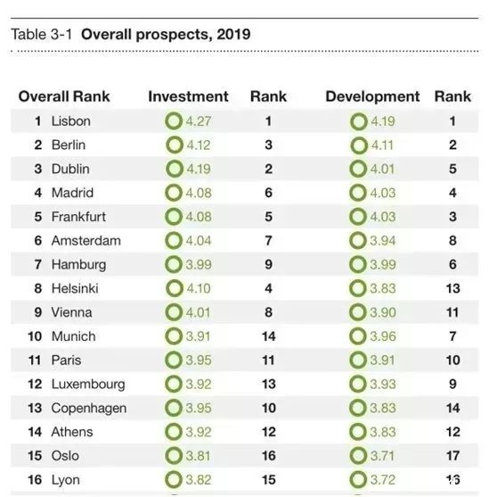 报告中,葡萄牙里斯本位居首位,成为欧洲主要城市中最具房地产投资价值和发展前景的城市。