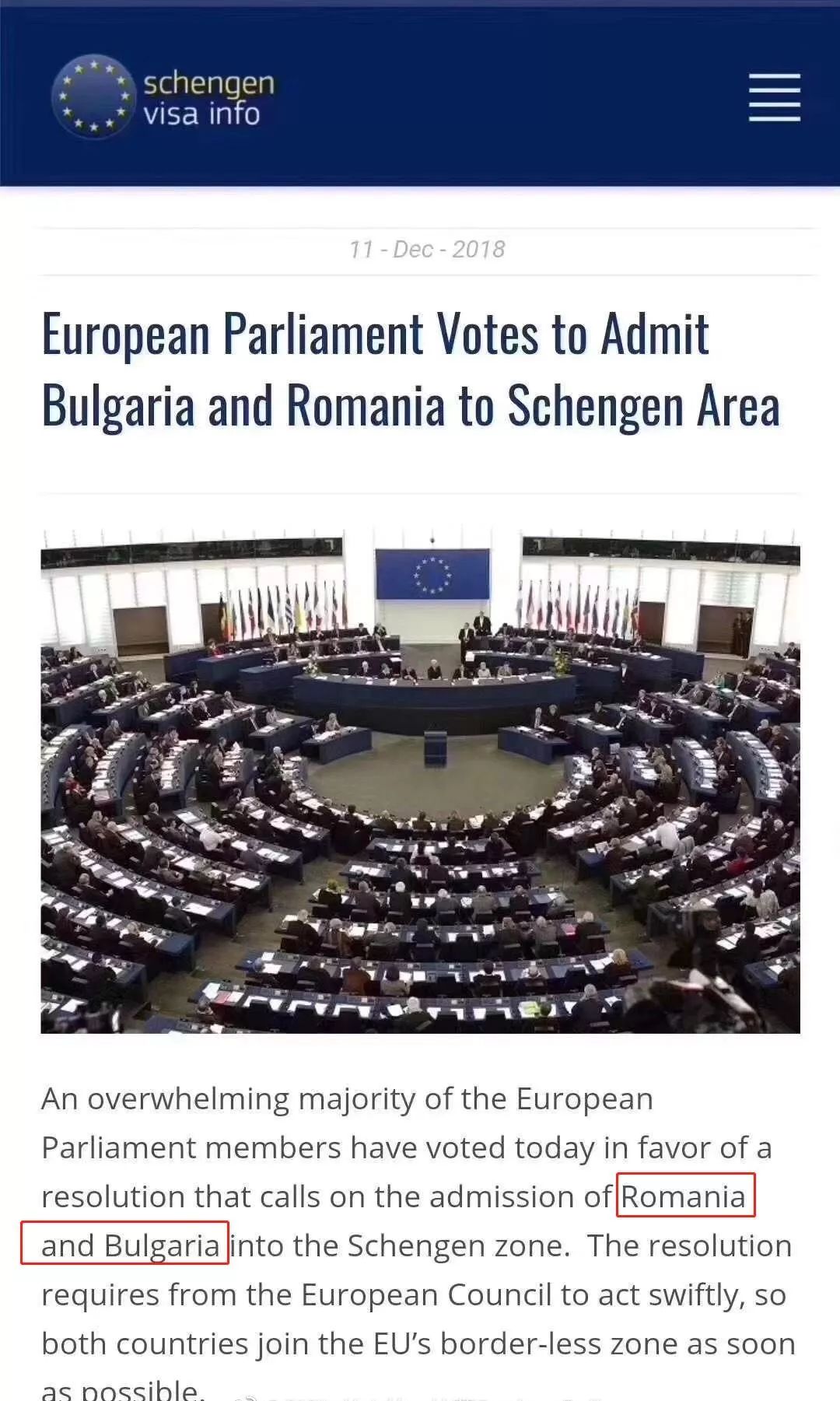 欧洲会议(EP)12月11日通过了非立法报告,邀请罗马尼亚和保加利亚成为申根地区的正式成员,届时26国将添加至28国!(具体加入时间还要等待正式公布)