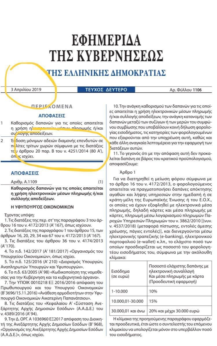 据这份政府公文称,希腊移民政策部颁布以下规定,其中涉及希腊投资移民的内容如下: