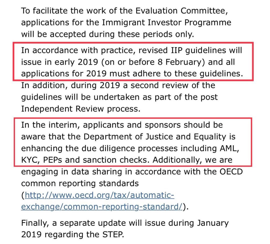 在此期间,爱尔兰司法部还将加强针对IIP的尽职调查和审核,如反洗钱等。