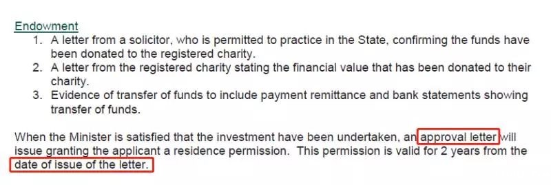 新法案中明确指出捐赠移民的申请人在转5年长期居留许可时无需提供证据。除此之外,还特别表明,居留许可的更新应在居留许可到期前3个月致函司法部来申请更新。更新时只需满足以下条件:指定的投资在规定的时间内保持不变,即至少三年;慈善捐赠不需要进一步的证据;没有成为爱尔兰国家的经济负担。