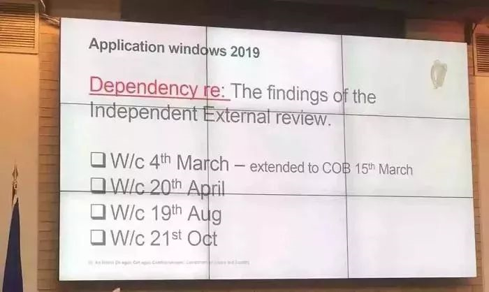 当地时间2018年12月17日,爱尔兰移民归化局正式发布2019年IIP申请递交窗口期,全年共有四次递交窗口期:2019年3月4日-3月8日(本月确定延长至3月15日关闭)、2019年5月20日-5月24日、2019年8月19日-8月23日、2019年10月21日-10月25日。