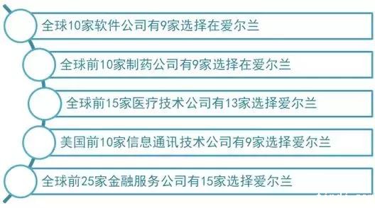 爱尔兰信息和软件产业也很发达,被称为“欧洲硅谷”。经济持续高速增长。低至12.5%的企业所得税,使爱尔兰成为跨国公司在欧洲设立总部的热门地。