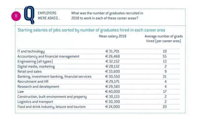 爱尔兰公布的最新高等学校毕业生就业与薪资调查显示,2019 年的平均起薪为30409欧元/年,约合人民币24万元。