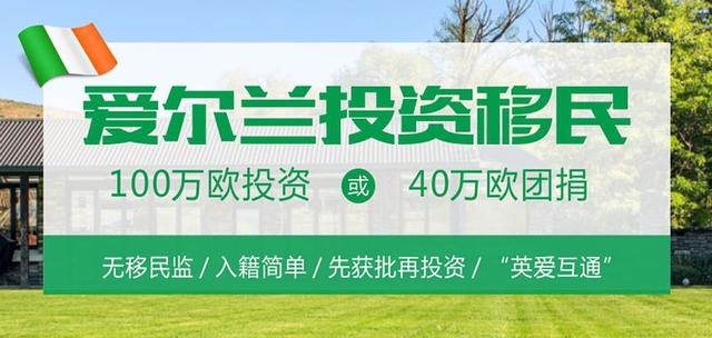 A、投资100万欧元至爱尔兰移民的商业项目或者移民基金,B、捐赠50万欧元(或者团捐40万欧元)至爱尔兰的公益项目;