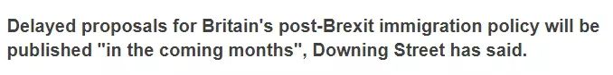 翻译成中文标题为被推迟的“脱欧后的移民计划”将在几个月内出台。也就是说,这是一篇介绍关于脱欧后的英国移民系统的规划安排的新闻。