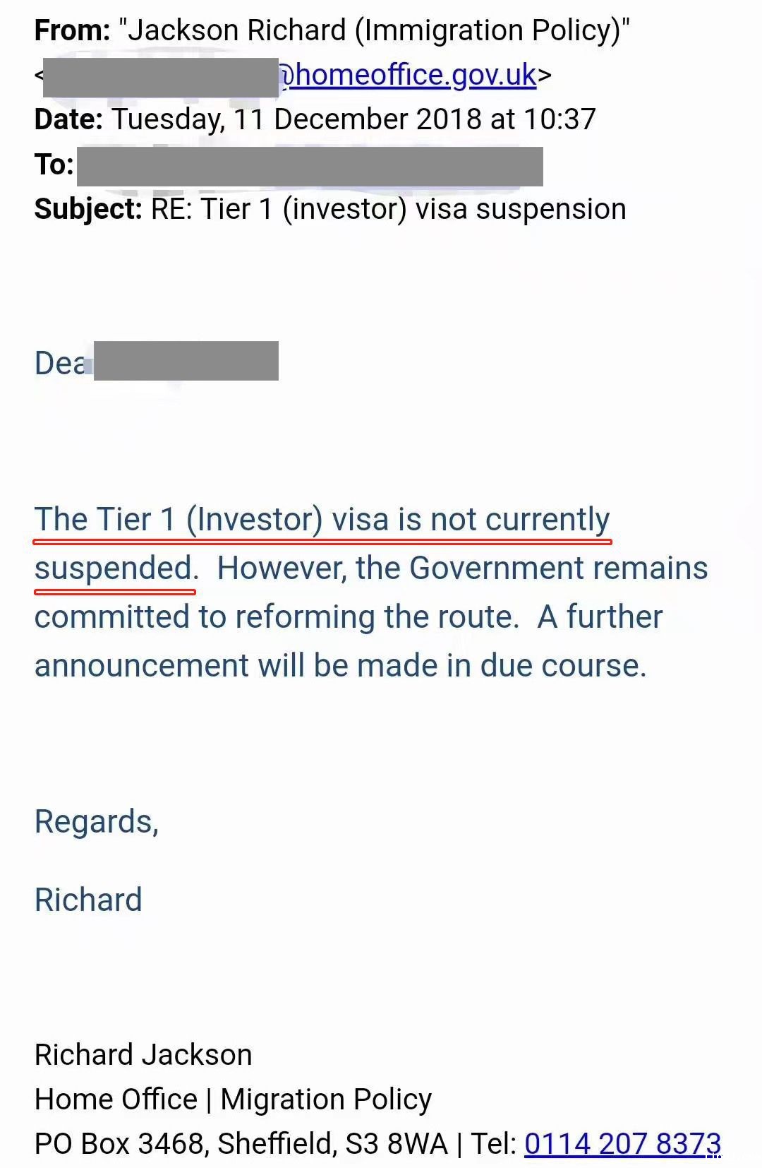 可就在12月11日,英国移民律师公会(ILPA)在向英国内政部进行查证后,官方推特发文确认投资移民目前并没有被暂停,仍然接受新申请!