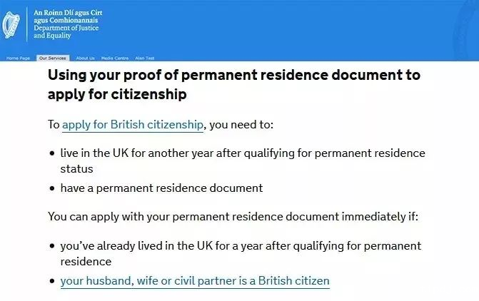 只需要英国永居身份在英国居住满1年,就可以申请入籍。不过英国入籍比爱尔兰麻烦些,需要通过英国生活考试(«Life in the UK»),申请人英语口语水平要达到欧洲语言教学评估共同纲领(CEFR)B1水平。