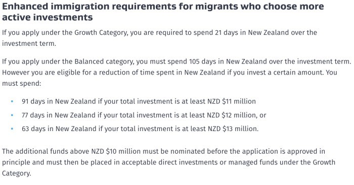 总投资至少1100万纽币 → 居住时长可减少至91天